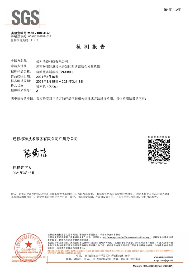 本產(chǎn)品為經(jīng)過表面處理的磷酸鹽,并復(fù)合一定量的超微(細(xì))粉體制成。磷酸鹽微溶于水后,磷酸根在鋼鐵表面形成一層致密的磷化膜,這層磷化膜能有效阻隔氧﹑水及其它有害物質(zhì)對(duì)鋼鐵表面的侵蝕;同時(shí),通過對(duì)粉體顆粒表面處理及復(fù)合一定量的超微(細(xì))粉體,使顏料與基料結(jié)合力增強(qiáng),促進(jìn)漆膜性能,有利于阻止有害物質(zhì)對(duì)鋼鐵表面的侵蝕.